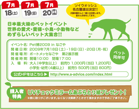 7月18日(土)~20日(月・祝) 「ペット博2009in 名古屋」